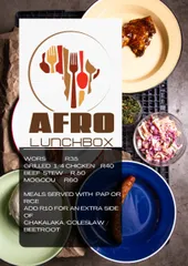 South Africa My Account Login Register Login Register Wishlists Viewcart en language English ZAR currency ZAR Delivery Dine-In Takeaway Delivery Dine-In Takeaway South Africa × language english french currency euro rupees pound doller Change Theme South Africa × language english french currency euro rupees pound doller Change Theme Healthy Healthy Smoothies Healthy Juices Braai Confectionary Fast Food Gourmet West African Nigerian Southern African Zimbabwean Beverages × SELECT YOUR LOCATION Confirm & Proceed Remove Cart × This change will remove all your cart products. Do you really want to continue ? Afro Lunchbox Copy Copied https://africanize.royoorders.com/vendor/afro-lunchbox A restaurant giving you your lunchbreak back with a taste of home clock Closed Filter Sort By Newest Arrivals Featured A to Z Z to A Cost : Low to High Cost : High to Low Avg. Customer Review Wors In Southern African R45 Grilled 1/4 Chicken In Gourmet R50 Beef Stew In Southern African R75 Mogodu In Southern African R75 Mixed Grill In Gourmet R120 ×